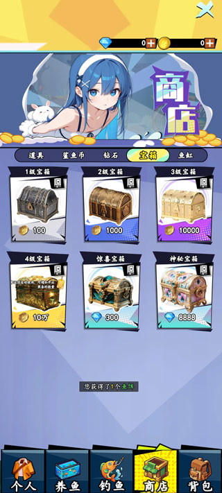 5、鱼儿上岸后,有机会获得宝箱。