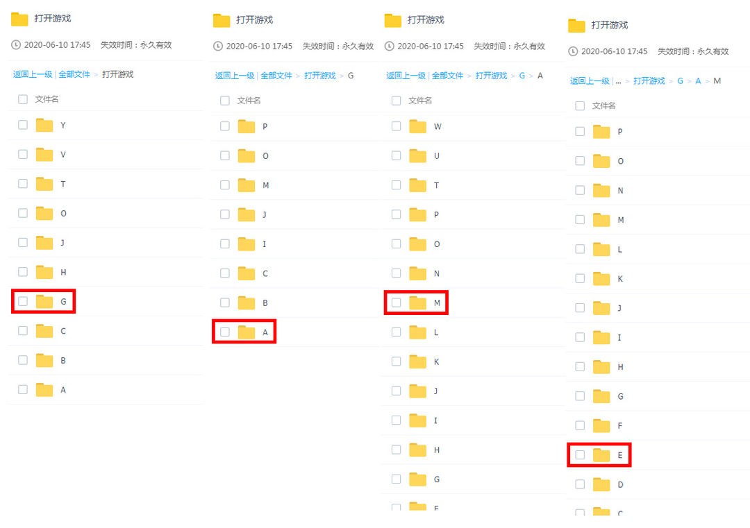 此处的“打开游戏”意为排着打开名为G A M E的文件夹