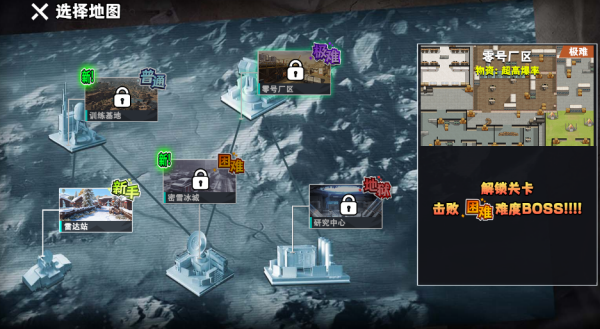 3、超高爆率的零号厂区需要击败困难难度的BOSS!