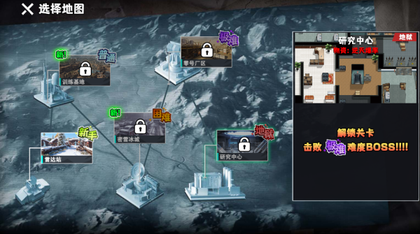 4、逆天爆率的研究中心需要击败极难难度的BOSS才可以解锁!