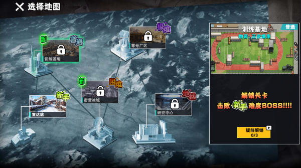 1、首先我们打开地图,可以看到正常爆率的训练基地需要击败新手难度BOSS!