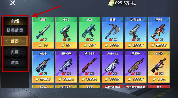 2、我们可以在左侧看到不同的武器和装备类型,选择你需要的购买。