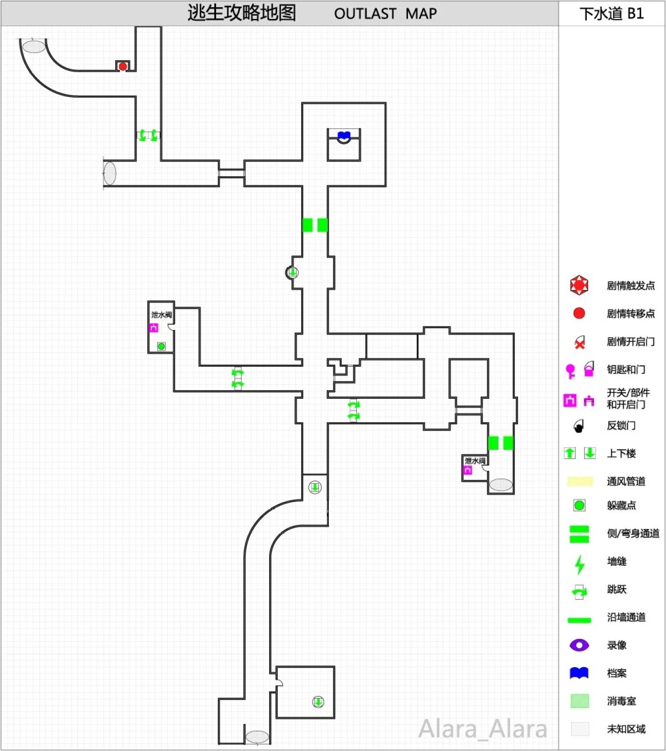 环境设计:阴暗的走廊、血迹斑斑的墙壁、闪烁的灯光与诡异的音效,构建出压抑的废墟场景。