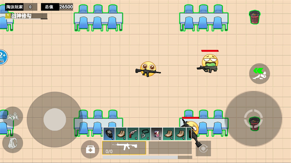 3、玩家将控制一个Emoji表情角色在校园场景中移动。通过虚拟摇杆或方向键控制角色行走、奔跑,探索教学楼、图书馆、操场等不同区域。