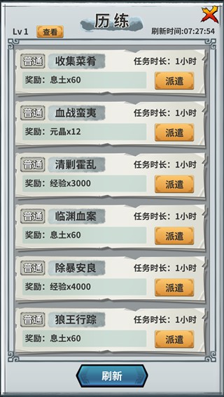通过派遣弟子完成任务获得大量经验,银两,材料等等。
