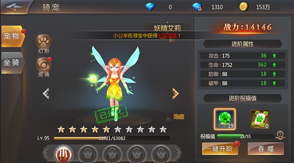 宠物需要通过吞噬装备和宠物口粮获得提升等级的经验;