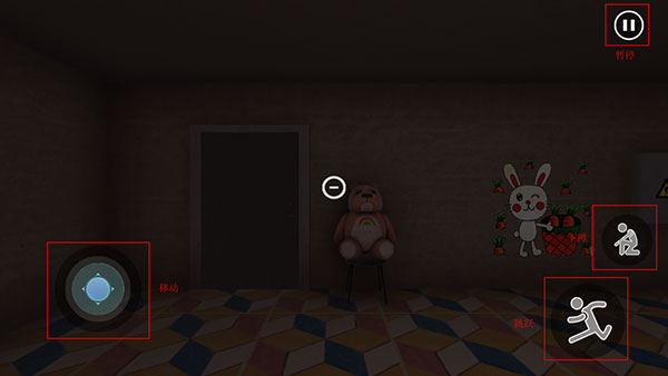 2、在自由探索中,左边为移动按钮,右边分别是跳跃与下蹲,右上角可以暂停和返回主页;