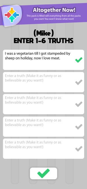 该游戏提供了令人兴奋的真相检测声明类别,例如醉酒故事,残骸旅行,动物相遇,搞笑家庭,学校探险等等。