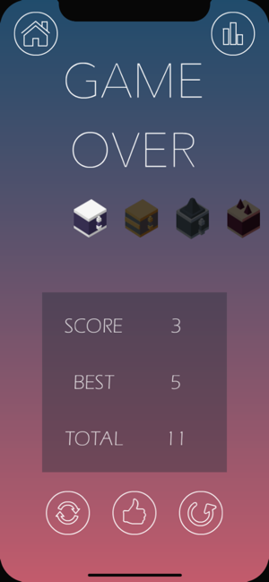 3.通过重力感应来改变小方块的左右方向,千万不要让你的小方块在跳跃的过程中掉下去。、