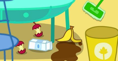 兔宝宝做值日,同学们都回去了,只剩兔宝宝一个,大家一起来帮助她打扫教室,整理干净吧。点击拖动用具物品进行整理。
